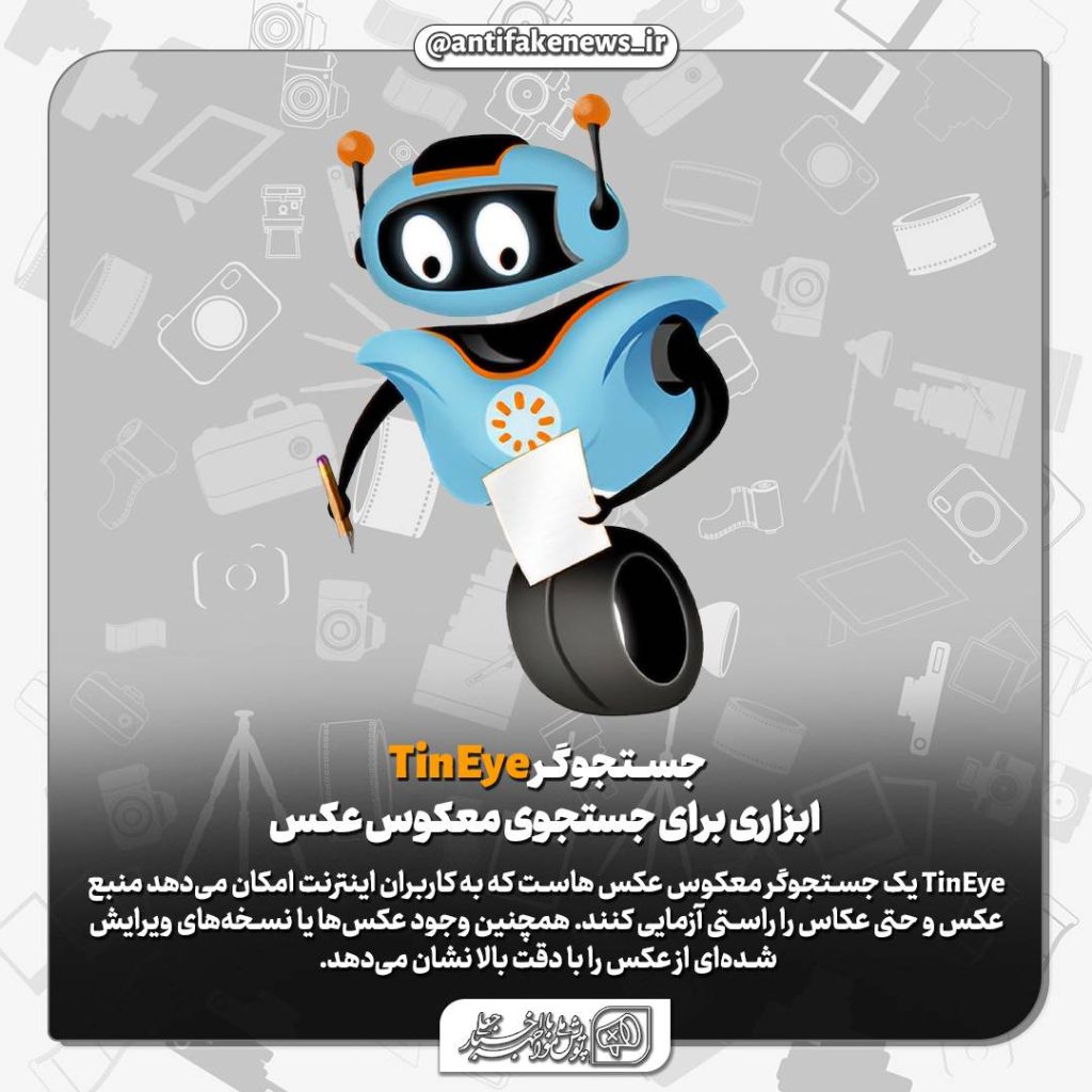 TinEye یک جستجوگر معکوس عکسهاست که به کاربران اینترنت امکان میدهد منبع عکس و حتی عکاس را راستی آزمایی کنند. همچنین وجود عکسها یا نسخههای ویرایش شدهای از عکس را با دقت بالا نشان میدهد.