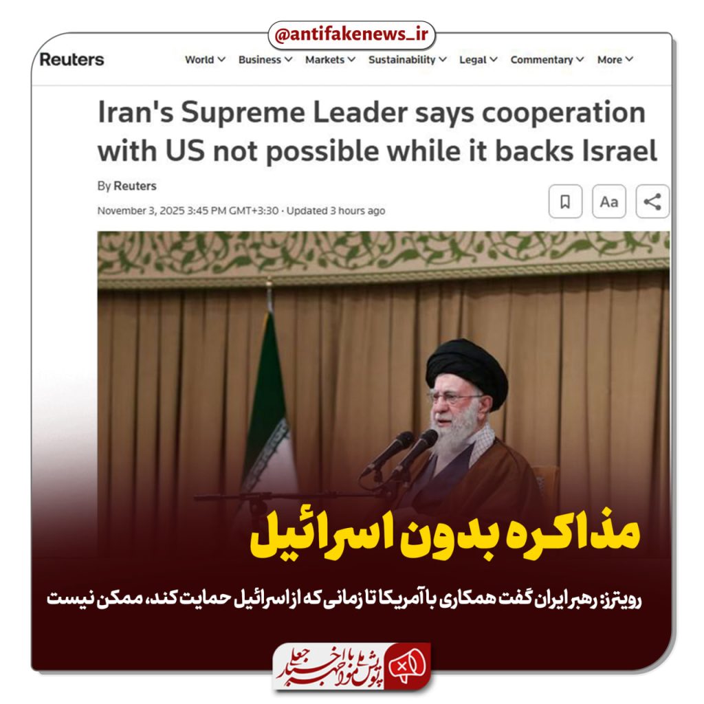تحلیل خبر رویترز: «علی خامنه‌ای می‌گوید همکاری با آمریکا ممکن نیست تا زمانی که از اسرائیل حمایت کند»